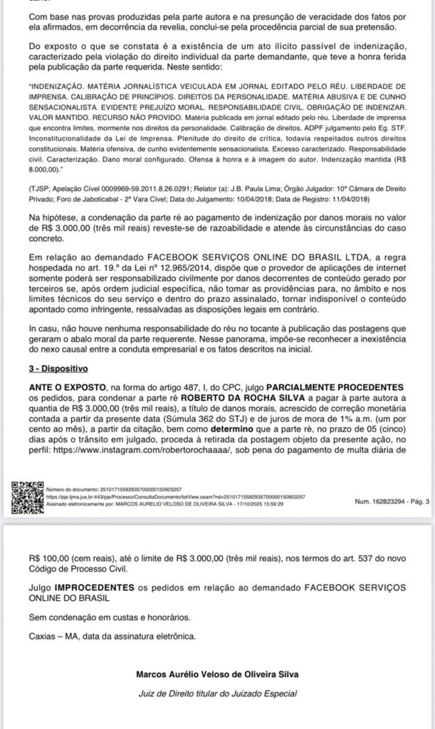 Um processo ele já perdeu, e pelo jeito está com vontade de aumentar a coleção. Fica a dica, Roberto: talvez seja hora de refletir sobre a vida, as escolhas e o tipo de energia que anda jogando por aí. Porque, no fim das contas, caráter não é conteúdo pra viralizar é construção diária. E quem insiste no caminho da mentira e Fake News, cedo ou tarde, acaba descendo a ladeira abaixo a própria reputação.